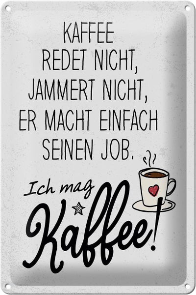 Blechschild Spruch Kaffee redet nicht, jammert nicht 20x30cm