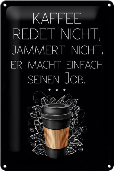 - TitelBlechschild Spruch Kaffee redet nicht macht seinen Job 20x30cm [ORIGINAL BLECHSCHILD von FEMER]