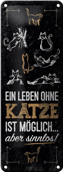 Blechschild Spruch Katze Ein Leben ohne Katze möglich 10x27cm