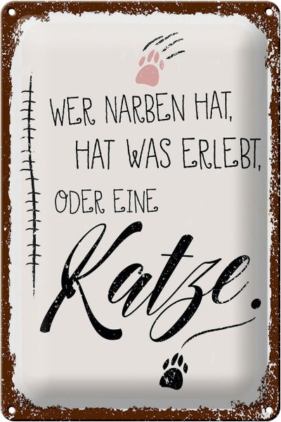 - TitelBlechschild Spruch Katze Wer Narben hat was erlebt 20x30cm [ORIGINAL BLECHSCHILD von FEMER]