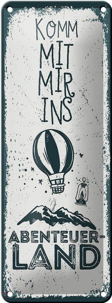 Blechschild Spruch Komm mit mir ins Abenteuerland 27x10cm