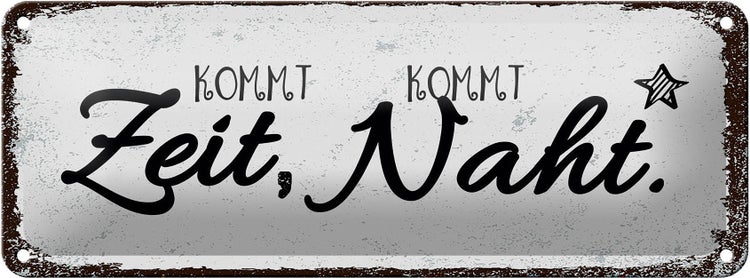 - TitelBlechschild Spruch Kommt Zeit, kommt Naht Hobby Dekoration 27x10cm [ORIGINAL BLECHSCHILD von FEMER]