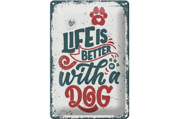 Blechschild Spruch Life is better with a Dog rot 20x30cm