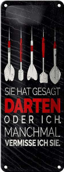 Blechschild Spruch lustig sie gesagt Darten oder ich 10x27cm