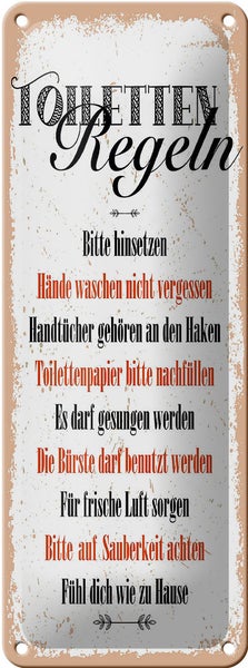 Blechschild Spruch lustig Toiletten Regeln 10x27cm