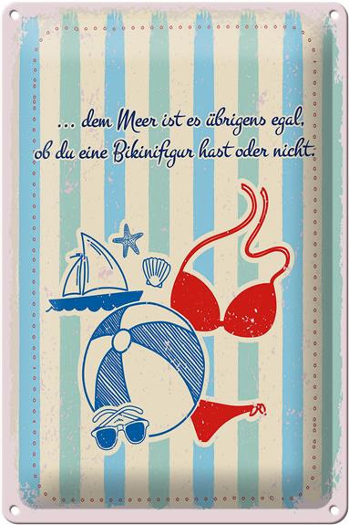 Blechschild Spruch Meer Urlaub egal ob du Bikinifigur 20x30cm