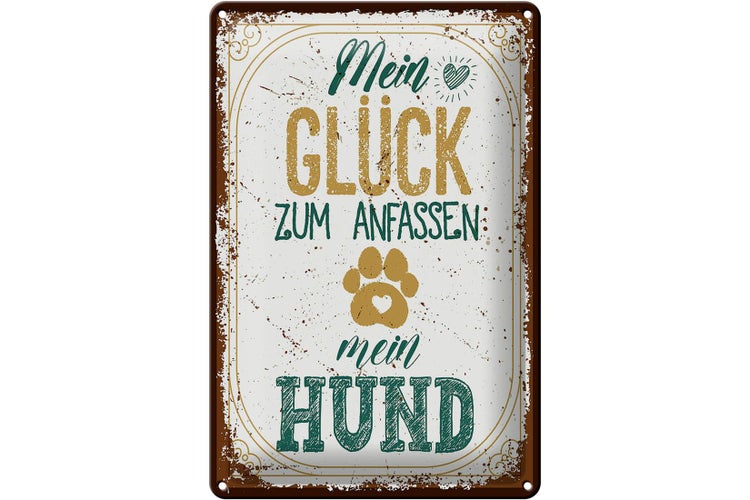 - TitelBlechschild Spruch Mein Glück zum Anfassen mein Hund 20x30cm [ORIGINAL BLECHSCHILD von FEMER]