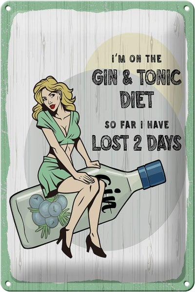 - TitelBlechschild Spruch Pinup I´m on the Gin & Tonic Diet 20x30cm [ORIGINAL BLECHSCHILD von FEMER]