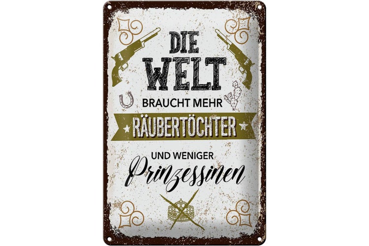 - TitelBlechschild Spruch Räubertöchter weniger Prinzessinen 20x30cm [ORIGINAL BLECHSCHILD von FEMER]