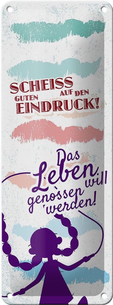 - TitelBlechschild Spruch Scheiss auf den guten Eindruck 10x27cm [ORIGINAL BLECHSCHILD von FEMER]