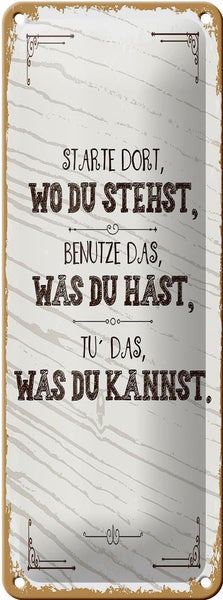 Blechschild Spruch Starte dort wo du stehst, benutze 10x27cm