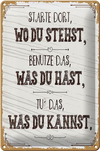 Blechschild Spruch Starte dort wo du stehst, benutze 20x30cm