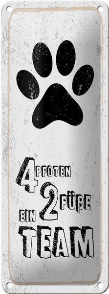 Blechschild Spruch Tiere 4 Pfoten 2 Füße 1 Team 10x27cm