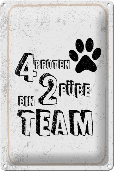 - TitelBlechschild Spruch Tiere 4 Pfoten ein 2 Füße Team 20x30cm [ORIGINAL BLECHSCHILD von FEMER]