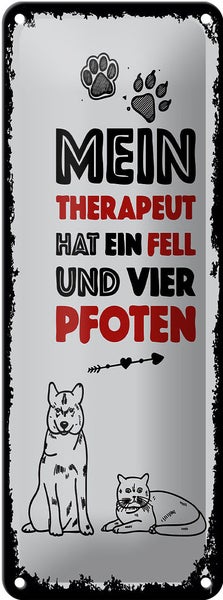 - TitelBlechschild Spruch Tiere Mein Therapeut 4 Pfoten 10x27cm Dekoration [ORIGINAL BLECHSCHILD von FEMER]