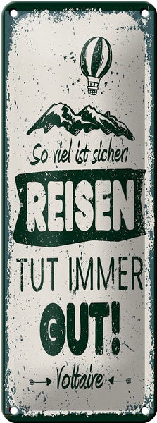 - TitelBlechschild Spruch Voltaire Reisen tut immer gut 10x27cm Dekoration [ORIGINAL BLECHSCHILD von FEMER]