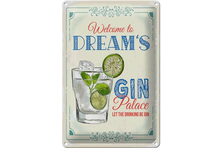 - TitelBlechschild Spruch Welcome to dream´s Gin Palace 20x30cm [ORIGINAL BLECHSCHILD von FEMER]