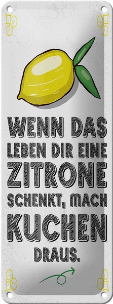 Blechschild Spruch Wenn das Leben dir Zitrone schenkt 10x27cm