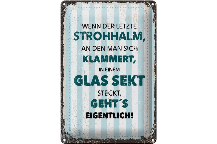 Blechschild Spruch Wenn der letzte Strohhalman 20x30cm