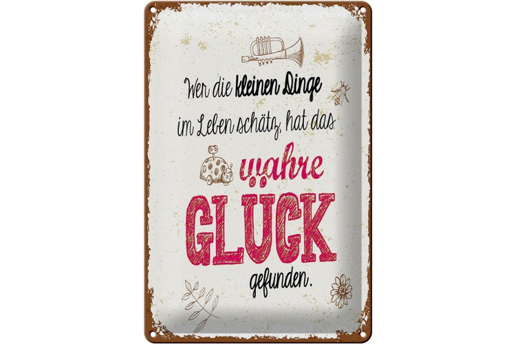 Blechschild Spruch Wer kleine Dinge schätzt hat Glück 20x30cm