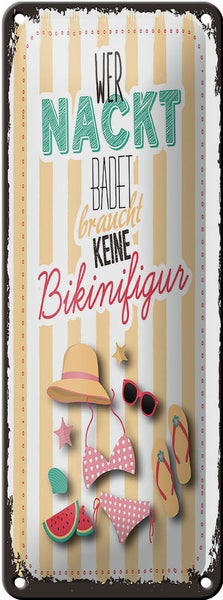 - TitelBlechschild Spruch wer nackt badet keine Bikinifigur 10x27cm [ORIGINAL BLECHSCHILD von FEMER]