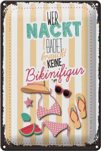 - TitelBlechschild Spruch wer nackt badet keine Bikinifigur 20x30cm [ORIGINAL BLECHSCHILD von FEMER]