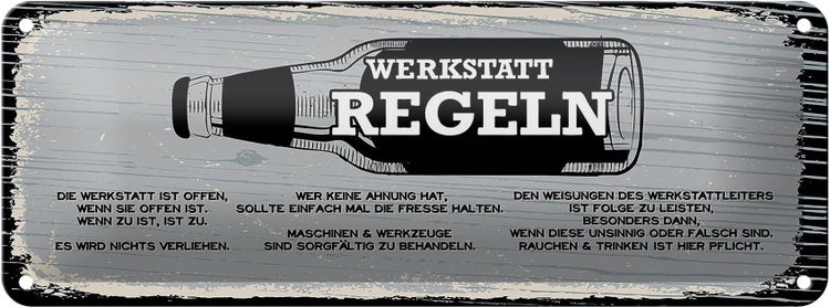 - TitelBlechschild Spruch Werkstatt Regeln Maschinen Dekoration 27x10cm [ORIGINAL BLECHSCHILD von FEMER]