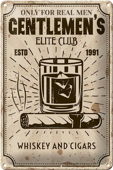 Blechschild Spruch Whiskey Cigars elite club real men 20x30cm