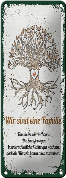 Blechschild Spruch Wir sind Familie alles zusammen 10x27cm