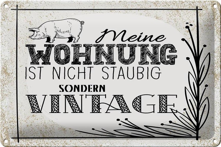 - TitelBlechschild Spruch Wohnung nicht staubig Vintage 30x20cm weißes Schild [ORIGINAL BLECHSCHILD von FEMER]