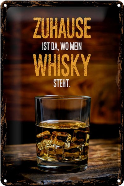 - TitelBlechschild Spruch Zuhause ist da wo mein Whisky 20x30cm [ORIGINAL BLECHSCHILD von FEMER]