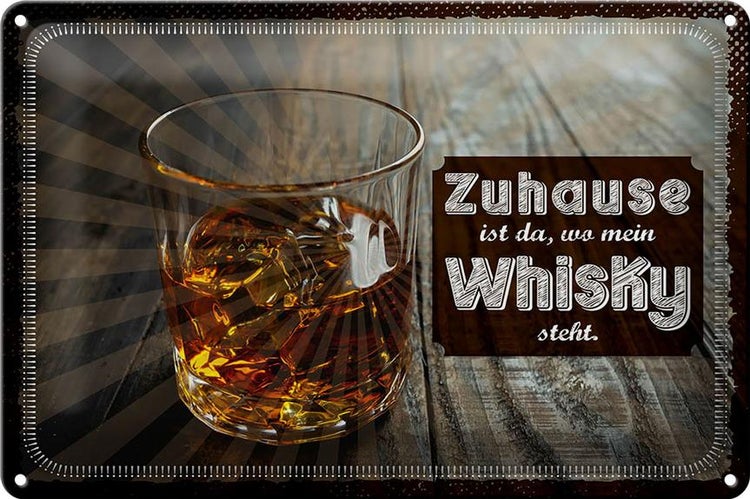 - TitelBlechschild Spruch Zuhause ist da, wo mein Whisky 30x20cm [ORIGINAL BLECHSCHILD von FEMER]