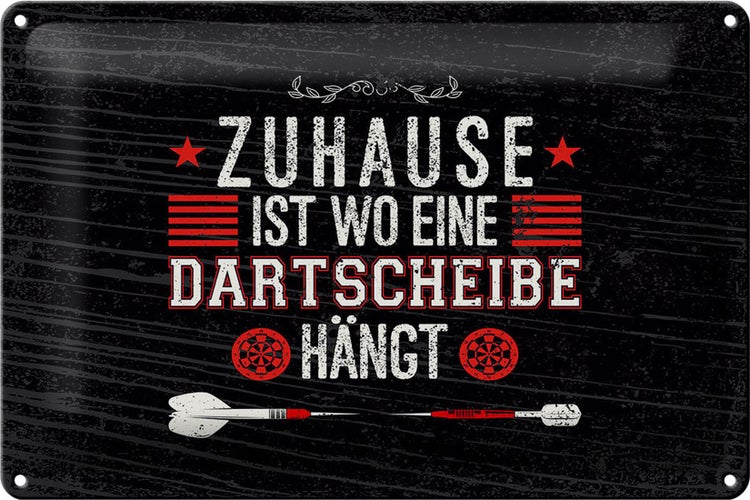- TitelBlechschild Spruch Zuhause ist wo eine Dartscheibe 30x20cm [ORIGINAL BLECHSCHILD von FEMER]