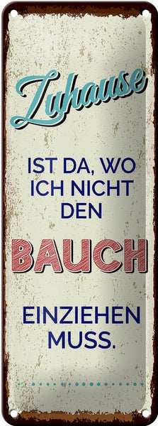 Blechschild Spruch Zuhause wo nicht Bauch einziehen 10x27cm