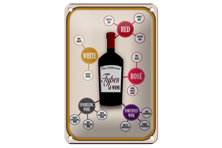 - TitelBlechschild Wein 12x18cm Types of Wine red white rose [ORIGINAL BLECHSCHILD von FEMER]