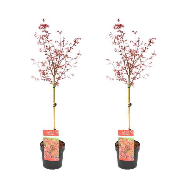 Bloomique - 2er Set - Acer palmatum shaina - Fächerahorn auf Stamm - Gartenpflanzen - Baum - winterhart - 80-100cm hoch - Topf 19cm