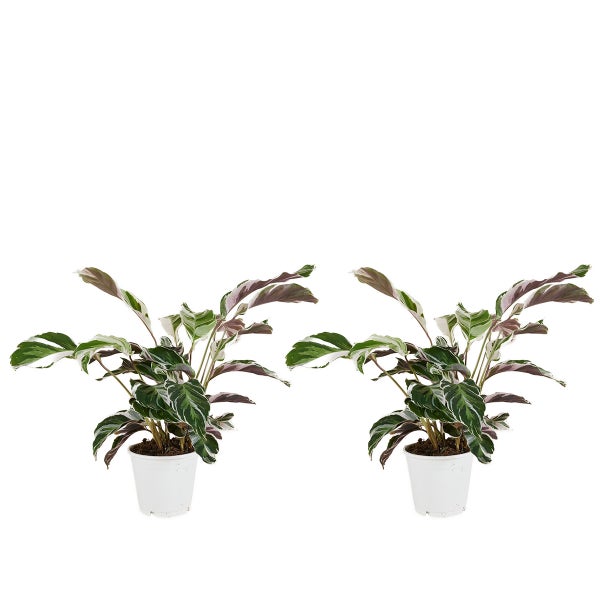 Bloomique - 2er Set - Calathea White Fusion - Korbmarante - Zimmerpflanzen - Pflegeleicht - Luftreinigend - Höhe 40-50 cm - Topf 14 cm