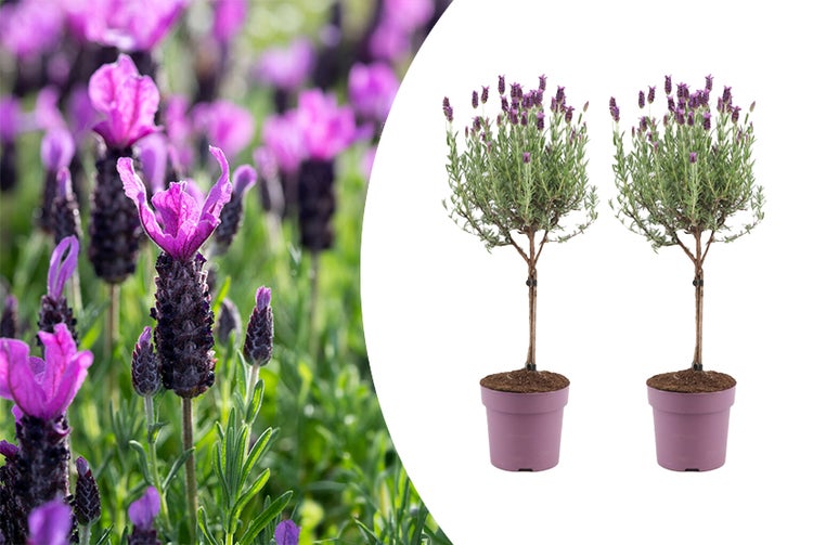 Bloomique - 2er-Set - Lavandula Stoechas 'Anouk' - Lavendelbaum - Gartenpflanzen - Winterhart - ⌀15 cm - 50-60 cm
