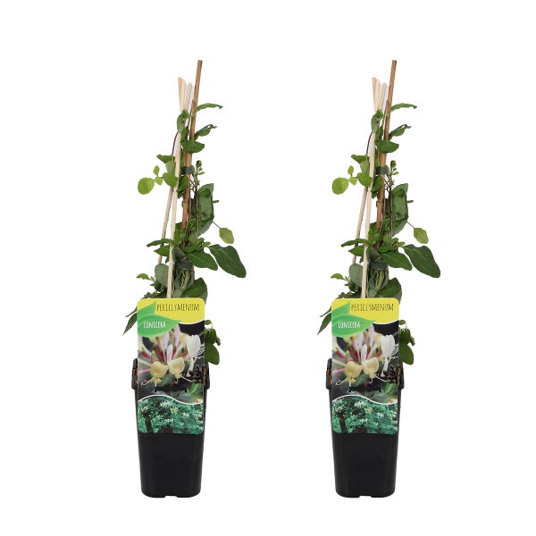 Bloomique - 2er-Set - Lonicera periclymenum - Wildes Geißblatt - Gelb - Kletterpflanzen - Gartenpflanzen - Winterhart - Topf 15 cm - 70-80 cm hoch