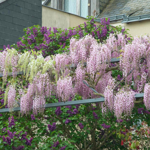 Die Schlingpflanze Wisteria floribunda Rosea oder Glyzinie ist eine pflegeleichte Pflanze. Diese Pflanze ist die rosafarbene Variante der bekannten Glyzinie und wächst mit wunderschönen, sehr langen und hängenden Blütenbüscheln. Diese Blütentrauben erscheinen im Mai-Juni massenhaft, aber im September kann es sogar zu einer Nachblüte kommen. Der rosa Regen klettert gerne und braucht festen Halt. Mit den schönsten Blüten und einem wunderbaren Duft ist die Wisteria floribunda Rosea eine echte Bereicherung für Ihren Garten.