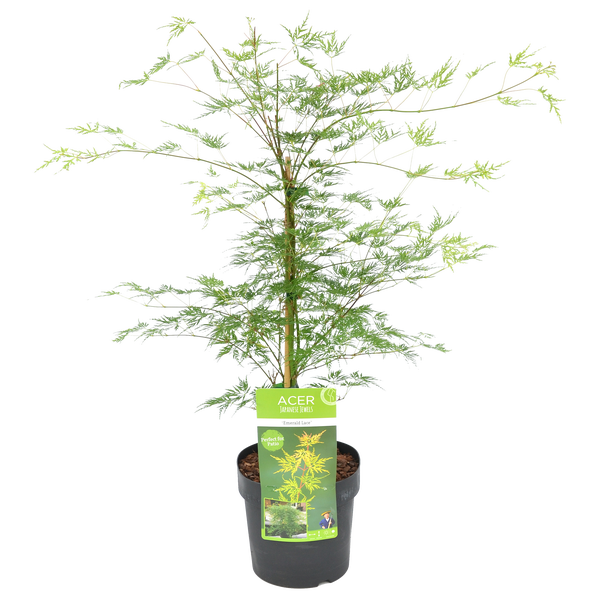 Kennen Sie schon die schöne Acer palmatum 'Emerald Lace'? Im Volksmund ist dieser robuste Strauch auch als Japanischer Ahorn bekannt. Seinen Namen verdankt er seiner schönen grünen Farbe. Die Blätter dieser Acer sind hellgrün, handförmig und doppelt eingeschnitten. Wie alle seine Brüder und Schwestern verfärbt auch dieser Acer seine Blätter. Im Herbst tauscht es seine frischgrünen Blätter gegen eine rote oder sogar purpurrote Farbe. Lassen Sie den Acer nicht länger warten und pflanzen Sie ihn schnell in Ihren Pflanzkorb!