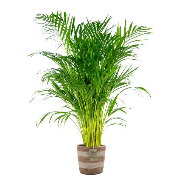 Holen Sie sich die Tropen in Ihr Wohnzimmer mit dem Dypsis Lutescens Inkl. Jutekorb Nea! Lassen Sie die Sonne scheinen und fühlen Sie sich mit dieser pflegeleichten Goldpalme in den Tropen. Der Dypsis ist perfekt für das Leben in Ihrem Wohnzimmer und aufgrund seines leichten Charakters werden Sie sich in den Tropen fühlen. Diese Pflanze sieht nicht nur fantastisch aus, sondern reinigt auch die Luft – ein echter Gewinner. Nicht umsonst wird die Dypsis Lutescens auch als König der Tropen bezeichnet. Holen Sie sich diese Goldpalme schnell nach Hause und genießen Sie sofort das ultimative Urlaubsfeeling.