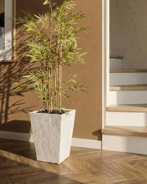 Großer, quadratischer Blumenkübel für den Innen- und Außenbereich. Dieser moderne Pflanzentopf setzt dank seiner stilvollen Holzoptik Ihre Blumen wirkungsvoll in Szene und verbindet Stabilität mit angenehmem Leichtgewicht. Der Blumentopf basiert auf einer hochwertigen Mischung aus Magnesiumoxid, Magnesiumchlorid und Glasfaser, die ihn robust, formstabil und wetterbeständig macht. So bleibt der Topf trotz Sonne und Temperaturschwankungen farb- und strukturbeständig und lässt sich dennoch mühelos umstellen. Ein integriertes Loch am Boden sorgt für zuverlässige Entwässerung und macht ihn zu einer stilvollen Wahl für Innen‑ und Außenbereiche. Details: Typ Outdoor Blumentopf. Farbe: Beige. Farbton: Hellbeige. Material: Stein. Material: Lehm-Faser-Mischung. Form: Quadratisch. Abflusslöcher am Boden: Ja. Finish: Gefärbt. Innentopf benötigt: Nein. Volumen: 40. Abmessungen: Tiefe: 42 cm. Breite: 42 cm. Höhe: 50 cm. Gesamtmasse: 42x42x50. Gewicht: 8 kg. .Sie kaufen: 1 x Blumenkübel. Produktvorteile: Die integrierte Öffnung sorgt für schnellen Wasserabfluss, Passt ausgezeichnet zu vielen Einrichtungsstilen, Schmutz- und feuchtigkeitsabweisendes Material, UV-Beständigkeit, Geeignet für den Innen- und Aussenbereich, Handgefertigte Präzision. Montage: Benötigt keine Montage. Zusatzinformationen: Jeder Artikel ist ein handgefertigtes Unikat; Farbschattierung und Muster können daher vom Foto abweichen. Beständigkeit: Feuchtigkeitsbeständig, UV-beständig, Temperaturbeständig. Beständigkeit Text: Feuchtigkeitsbeständigkeit bedeutet, dass der Artikel leichtem Regenschauer und hoher Luftfeuchtigkeit im Außenbereich standhält. Sollte es nicht möglich sein, ihn drinnen zu lagern, sollte er mit einem Regenschutz abgedeckt werden. Wenn Möbel oder Accessoires längere Zeit Feuchtigkeit ausgesetzt werden, kann dies zu anhaltenden Schäden führen. UV-strahlenbeständige Möbel weisen eine erhöhte Beständigkeit gegen Verblassen oder Verfärbung auf. Wir empfehlen jedoch, dass Sie das Produkt bei Nichtgebrauch abgedeckt aufbewahren. Dies gewährleistet die maximale Lebensdauer der Möbel. Das Produkt ist temperaturbeständig, so dass es an heißen Tagen und außerhalb der Saison im Freien verwendet werden kann. Der Artikel hält Temperaturen von -20° bis 40° Celsius stand. Pflegeanleitung: Lehm-Faser-Mischung: 1.Das Material ist für die Nutzung im Innen- und Außenbereich konzipiert und bedarf keiner besonderen Pflege oder Reinigung. Jedoch empfehlen wir für die Wintersaison, die Produkte trocken und kühl drinnen zu lagern.