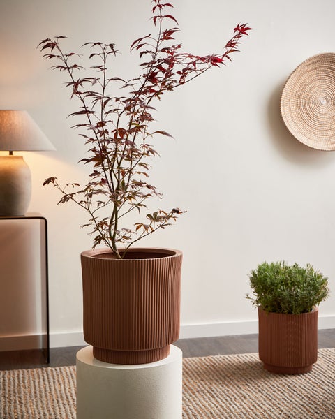 Runder, taupefarbener Blumenkübel mit angesagter Rillen-Struktur. Verschönern Sie Ihren In- und Outdoorbereich mit diesem Pflanztopf – ein Modell, das in Perfektion aufblüht. Er besteht aus einer hochwertigen Mischung aus Glasfaser und Ton, so ist der Kübel sowohl langlebig als auch strapazierfähig. Sein schlankes Design mit den vertikalen Rillen verleihen ihm einen eleganten Touch, während seine UV-, wasser-, wetter- und fleckenbeständigen Eigenschaften für eine anhaltende Schönheit sorgen. Dieser vielseitige Topf ist mit einem Abflussloch ausgestattet, um die Gesundheit Ihrer Pflanzen zu gewährleisten, und eignet sich perfekt für Gärten, Terrassen und Balkone. Details: Typ Outdoor Blumentopf. Farbe: Braun. Material: Keramik. Material: Lehm-Faser-Mischung. Form: Rund. Abflusslöcher am Boden: Ja. Innentopf benötigt: Nein. Volumen: 30.5. Abmessungen: Tiefe: 37 cm. Breite: 37 cm. Höhe: 37 cm. Gewicht: 6 kg. .Sie kaufen: 1 x Blumenkübel. Produktvorteile: Die integrierte Öffnung sorgt für schnellen Wasserabfluss, Ganzjähriger Schutz vor Sonne, Regen und Staub, Modernes Design, Beständig gegen niedrige und hohe Temperaturen, UV-Beständigkeit. Montage: Benötigt keine Montage. Zusatzinformationen: Bitte beachten Sie, dass jedes Modell leicht von dem im Bild dargestellten abweichen kann. Die Anordnung der Farben und Muster kann unterschiedlich ausfallen und wird nicht als Produktfehler, sondern als Merkmal betrachtet Beständigkeit: Temperaturbeständig, UV-beständig, Schmutzbeständig, Feuchtigkeitsbeständig. Beständigkeit Text: Feuchtigkeitsbeständigkeit bedeutet, dass der Artikel leichtem Regenschauer und hoher Luftfeuchtigkeit im Außenbereich standhält. Sollte es nicht möglich sein, ihn drinnen zu lagern, sollte er mit einem Regenschutz abgedeckt werden. Wenn Möbel oder Accessoires längere Zeit Feuchtigkeit ausgesetzt werden, kann dies zu anhaltenden Schäden führen. UV-strahlenbeständige Möbel weisen eine erhöhte Beständigkeit gegen Verblassen oder Verfärbung auf. Wir empfehlen jedoch, dass Sie das Produkt bei Nichtgebrauch abgedeckt aufbewahren. Dies gewährleistet die maximale Lebensdauer der Möbel. Das Produkt wurde aus Materialien gefertigt, die eine hohe Fleckenbeständigkeit aufweisen, weshalb es zu keinen Verfärbungen kommen sollte oder diese leicht zu beseitigen sind. Bei der Fleckenentfernung sind die Pflegehinweise zu berücksichtigen. Das Produkt ist temperaturbeständig, so dass es an heißen Tagen und außerhalb der Saison im Freien verwendet werden kann. Der Artikel hält Temperaturen von -20° bis 40° Celsius stand. Pflegeanleitung: Lehm-Faser-Mischung: 1.Das Material ist für die Nutzung im Innen- und Außenbereich konzipiert und bedarf keiner besonderen Pflege oder Reinigung. Jedoch empfehlen wir für die Wintersaison, die Produkte trocken und kühl drinnen zu lagern.