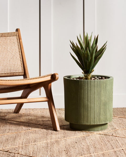 Runder, olivgrüner Blumenkübel mit angesagter Rillen-Struktur. Verschönern Sie Ihren In- und Outdoorbereich mit diesem Pflanztopf – ein Modell, das in Perfektion aufblüht. Er besteht aus einer hochwertigen Mischung aus Glasfaser und Ton, so ist der Kübel sowohl langlebig als auch strapazierfähig. Sein schlankes Design mit den vertikalen Rillen verleihen ihm einen eleganten Touch, während seine UV-, wasser-, wetter- und fleckenbeständigen Eigenschaften für eine anhaltende Schönheit sorgen. Dieser vielseitige Topf ist mit einem Abflussloch ausgestattet, um die Gesundheit Ihrer Pflanzen zu gewährleisten, und eignet sich perfekt für Gärten, Terrassen und Balkone. Details: Typ Outdoor Blumentopf. Farbe: Grün. Farbton: Olivgrün. Material: Keramik. Material: Lehm-Faser-Mischung. Form: Rund. Abflusslöcher am Boden: Ja. Innentopf benötigt: Nein. Volumen: 30.5. Abmessungen: Tiefe: 37 cm. Breite: 37 cm. Höhe: 37 cm. Gewicht: 6 kg. .Sie kaufen: 1 x Blumenkübel. Produktvorteile: Die integrierte Öffnung sorgt für schnellen Wasserabfluss, Ganzjähriger Schutz vor Sonne, Regen und Staub, Modernes Design, Beständig gegen niedrige und hohe Temperaturen, UV-Beständigkeit. Montage: Benötigt keine Montage. Zusatzinformationen: Bitte beachten Sie, dass jedes Modell leicht von dem im Bild dargestellten abweichen kann. Die Anordnung der Farben und Muster kann unterschiedlich ausfallen und wird nicht als Produktfehler, sondern als Merkmal betrachtet Beständigkeit: Temperaturbeständig, UV-beständig, Schmutzbeständig, Feuchtigkeitsbeständig. Beständigkeit Text: Feuchtigkeitsbeständigkeit bedeutet, dass der Artikel leichtem Regenschauer und hoher Luftfeuchtigkeit im Außenbereich standhält. Sollte es nicht möglich sein, ihn drinnen zu lagern, sollte er mit einem Regenschutz abgedeckt werden. Wenn Möbel oder Accessoires längere Zeit Feuchtigkeit ausgesetzt werden, kann dies zu anhaltenden Schäden führen. UV-strahlenbeständige Möbel weisen eine erhöhte Beständigkeit gegen Verblassen oder Verfärbung auf. Wir empfehlen jedoch, dass Sie das Produkt bei Nichtgebrauch abgedeckt aufbewahren. Dies gewährleistet die maximale Lebensdauer der Möbel. Das Produkt wurde aus Materialien gefertigt, die eine hohe Fleckenbeständigkeit aufweisen, weshalb es zu keinen Verfärbungen kommen sollte oder diese leicht zu beseitigen sind. Bei der Fleckenentfernung sind die Pflegehinweise zu berücksichtigen. Das Produkt ist temperaturbeständig, so dass es an heißen Tagen und außerhalb der Saison im Freien verwendet werden kann. Der Artikel hält Temperaturen von -20° bis 40° Celsius stand. Pflegeanleitung: Lehm-Faser-Mischung: 1.Das Material ist für die Nutzung im Innen- und Außenbereich konzipiert und bedarf keiner besonderen Pflege oder Reinigung. Jedoch empfehlen wir für die Wintersaison, die Produkte trocken und kühl drinnen zu lagern.