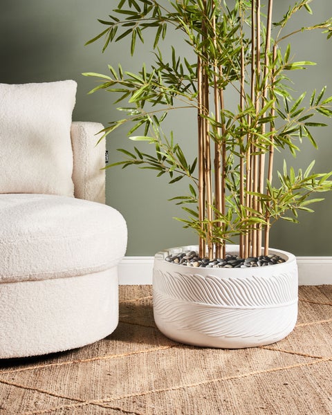 Moderner, runder Blumenkübel mit Palmenmuster für den Innen- und Außenbereich. Dieser Übertopf bietet Ihnen einen zeitlosen Charme, Langlebigkeit und einen naturnahen Look. Dieser Topf besteht aus einer robusten Mischung aus Ton und Glasfasern, die dem Modell sowohl Eleganz als auch Haltbarkeit verliehen. Er ist mit einem naturnahen Muster versehen und in einer stilvollen Anik-Optik gehalten, so erzählt jeder der Kübel eine Geschichte von organischer Schönheit. Dank des Lochs im Boden des Blumenkübels kann sich kein Gießwasser im Inneren ansammeln, so sind die Wurzeln Ihrer Pflanzen stets geschützt. Exponieren Sie Ihre ausgesuchten Pflanzen und verschönern Sie Ihren Indoor- oder Outdoorbereich mit diesem bezaubernden Pflanzgefäß. Details: Typ Outdoor Blumentopf. Farbe: Weiß. Farbton: Cremeweiß. Material: Keramik. Material: Lehm-Faser-Mischung. Form: Rund. Abflusslöcher am Boden: Ja. Innentopf benötigt: Ja. Volumen: 28. Abmessungen: Tiefe: 43 cm. Breite: 43 cm. Höhe: 23 cm. Gewicht: 6 kg. .Sie kaufen: 1 x Blumenkübel. Produktvorteile: Mit Abflussloch, Modernes Design, Dekorativ und zugleich funktional, Hochwertiges Material, Beständig gegen niedrige und hohe Temperaturen, UV-Beständigkeit, Geeignet für den Innen- und Aussenbereich. Montage: Benötigt keine Montage. Zusatzinformationen: Im Boden des Blumenkübels befindet sich ein vorgefertigtes Loch. Bei Nutzung in Innenräumen sollte ein Untersetzer genutzt werden. Beständigkeit: UV-beständig, Wasserbeständig, Temperaturbeständig. Beständigkeit Text: UV-strahlenbeständige Möbel weisen eine erhöhte Beständigkeit gegen Verblassen oder Verfärbung auf. Wir empfehlen jedoch, dass Sie das Produkt bei Nichtgebrauch abgedeckt aufbewahren. Dies gewährleistet die maximale Lebensdauer der Möbel. Dieses Produkt zeichnet sich durch eine hohe Wasserbeständigkeit aus. Dies bedeutet, dass es in Kontakt mit Regen oder anderen Flüssigkeiten nicht beschädigt wird. Sie können das Produkt im Freien, auch bei Regen oder einer hohen Luftfeuchtigkeit nutzen. Außerhalb der Saison sollte das Produkt bedeckt und an einer abgedachten Stelle aufbewahrt werden. Das Produkt ist temperaturbeständig, so dass es an heißen Tagen und außerhalb der Saison im Freien verwendet werden kann. Der Artikel hält Temperaturen von -20° bis 40° Celsius stand. Pflegeanleitung: Lehm-Faser-Mischung: 1.Das Material ist für die Nutzung im Innen- und Außenbereich konzipiert und bedarf keiner besonderen Pflege oder Reinigung. Jedoch empfehlen wir für die Wintersaison, die Produkte trocken und kühl drinnen zu lagern.