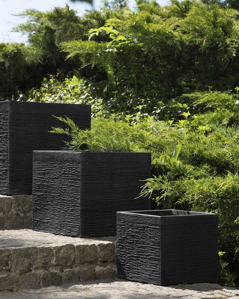Moderner, eckiger Pflanzenkübel in Schwarz, mittel. Die kantige Formgebung und die schlichte, dunkle Farbe verleiht diesem Blumenkübel seine zeitgemäße Ausstrahlung und macht ihn zu einer perfekten Wahl für moderne Gärten, Terrassen oder Eingangsbereiche. Im Boden des Blumenkübels befinden sich bereits zwei praktische, kleine Löcher. So kann überschüssiges Gießwasser jederzeit aus dem Topf abfließen. Das Material besteht aus einer Lehm-Faser-Mischung in Kombination mit Magnesiumchlorid und Fiberglas und ist dadurch extrem robust, widerstandsfähig und pflegeleicht. Details: Typ Outdoor Blumentopf. Farbe: Schwarz. Material: Keramik. Material: Lehm-Faser-Mischung. Form: Quadratisch. Abflusslöcher am Boden: Ja. Innentopf benötigt: Ja. Volumen: 50. Abmessungen: Tiefe: 40 cm. Breite: 40 cm. Höhe: 38 cm. Gewicht: 8 kg. .Sie kaufen: 1 x Blumenkübel. Produktvorteile: Mit Abflussloch, Dekorativ und zugleich funktional, Modernes Design, Hochwertiges Material, Beständig gegen niedrige und hohe Temperaturen, Geeignet für den Innen- und Aussenbereich, UV-Beständigkeit. Montage: Benötigt keine Montage. Zusatzinformationen: Bitte beachten Sie, dass Pflanzgefäße aus weißem Steingut einem natürlichen Alterungsprozess unterliegen und sich im Laufe der Zeit durch Witterungseinflüsse, Feuchtigkeit oder Chemikalien verfärben können. Bei Bedarf kann der Pflanztopf mit einem neuen Farbton aufgefrischt werden. Beständigkeit: Temperaturbeständig, Wasserbeständig, UV-beständig, Windbeständig. Beständigkeit Text: UV-strahlenbeständige Möbel weisen eine erhöhte Beständigkeit gegen Verblassen oder Verfärbung auf. Wir empfehlen jedoch, dass Sie das Produkt bei Nichtgebrauch abgedeckt aufbewahren. Dies gewährleistet die maximale Lebensdauer der Möbel. Dieses Produkt zeichnet sich durch eine hohe Wasserbeständigkeit aus. Dies bedeutet, dass es in Kontakt mit Regen oder anderen Flüssigkeiten nicht beschädigt wird. Sie können das Produkt im Freien, auch bei Regen oder einer hohen Luftfeuchtigkeit nutzen. Außerhalb der Saison sollte das Produkt bedeckt und an einer abgedachten Stelle aufbewahrt werden. Das Produkt ist temperaturbeständig, so dass es an heißen Tagen und außerhalb der Saison im Freien verwendet werden kann. Der Artikel hält Temperaturen von -20° bis 40° Celsius stand. Dieses Produkt besitzt eine hohe Windbeständigkeit, weshalb es nicht umkippen oder seine Stabilität aufgrund von Windböen verlieren sollte. Pflegeanleitung: Lehm-Faser-Mischung: 1.Das Material ist für die Nutzung im Innen- und Außenbereich konzipiert und bedarf keiner besonderen Pflege oder Reinigung. Jedoch empfehlen wir für die Wintersaison, die Produkte trocken und kühl drinnen zu lagern.