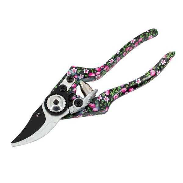 Die Blumenschere hat eine 5 cm lange Schneide aus gehärtetem Karbonstahl. Die Griffe aus Aluminiumdruckguss liegen dabei mit ihren 10 cm gut in der Hand. Mit einer Gesamtlänge von 19,5 cm eignet sich die Blumenschere bestens für allerlei Gartenarbeiten.