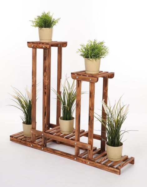 Blumenständer FLORANGE HxBxT 116x95x25cm 5 Ablagen Kieferholz Braun geflammt