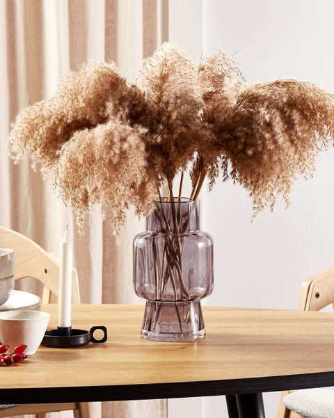 Formschöne, graue Glasvase mit einem edlen Goldrand und einer großen Öffnung. Diese halbdurchsichtige, graue Tischvase wird sich in jedem modernem oder klasssichen Wohnraum beweisen. Sie kann als Dekovase oder Tulpenvase benutzt werden oder man kann in ihr auch dekorative Äste, Federn oder Zweige prazieren. Das besondere an dem Modell ist nicht nur seine originelle Form, sondern auch der goldene Rand, welcher der Vase einen glamourösen Touch verleiht. Dank dem breitem Standfuß werden ihre Lieblingsblumen immer auf ihrem Platz bleiben. Details: Typ Blumenvase. Stil: Retro. Farbe: Grau. Material: Glas. Material: Glas. Finish: Glänzend. Handgefertigt: Nein. Abmessungen: Tiefe: 14 cm. Breite: 14 cm. Höhe: 26 cm. Gewicht: 0.7 kg. .Sie kaufen: 1 x Vase. Produktvorteile: Wunderbar geeignet für Schlaf- und Wohnbereich, Minimalistischer, skandinavischer Stil, Modernes Design, Hohe Qualität, Leichtes und zugleich strapazierfähiges Material. Montage: Benötigt keine Montage. Pflegeanleitung: Glas: 1.Bitte ausschließlich milde Reinigungsmittel bzw. Glasreiniger und weiche Tücher verwenden. Feuchte Stellen mit einem weichen Tuch trocken reiben. 2.Keine scheuernden Reinigungsmittel nutzen, da diese die Oberfläche beschädigen können.